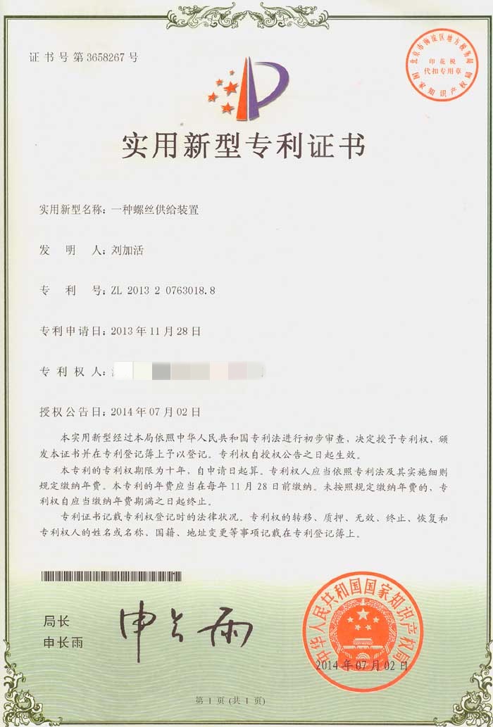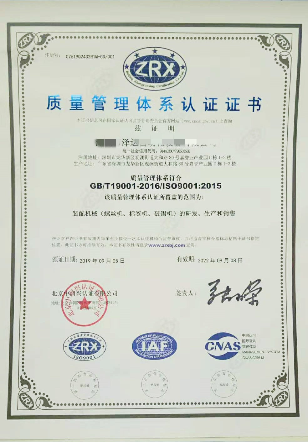 螺絲機(jī)專業(yè)生產(chǎn)廠家已通過(guò)ISO9001質(zhì)量管理體系認(rèn)證